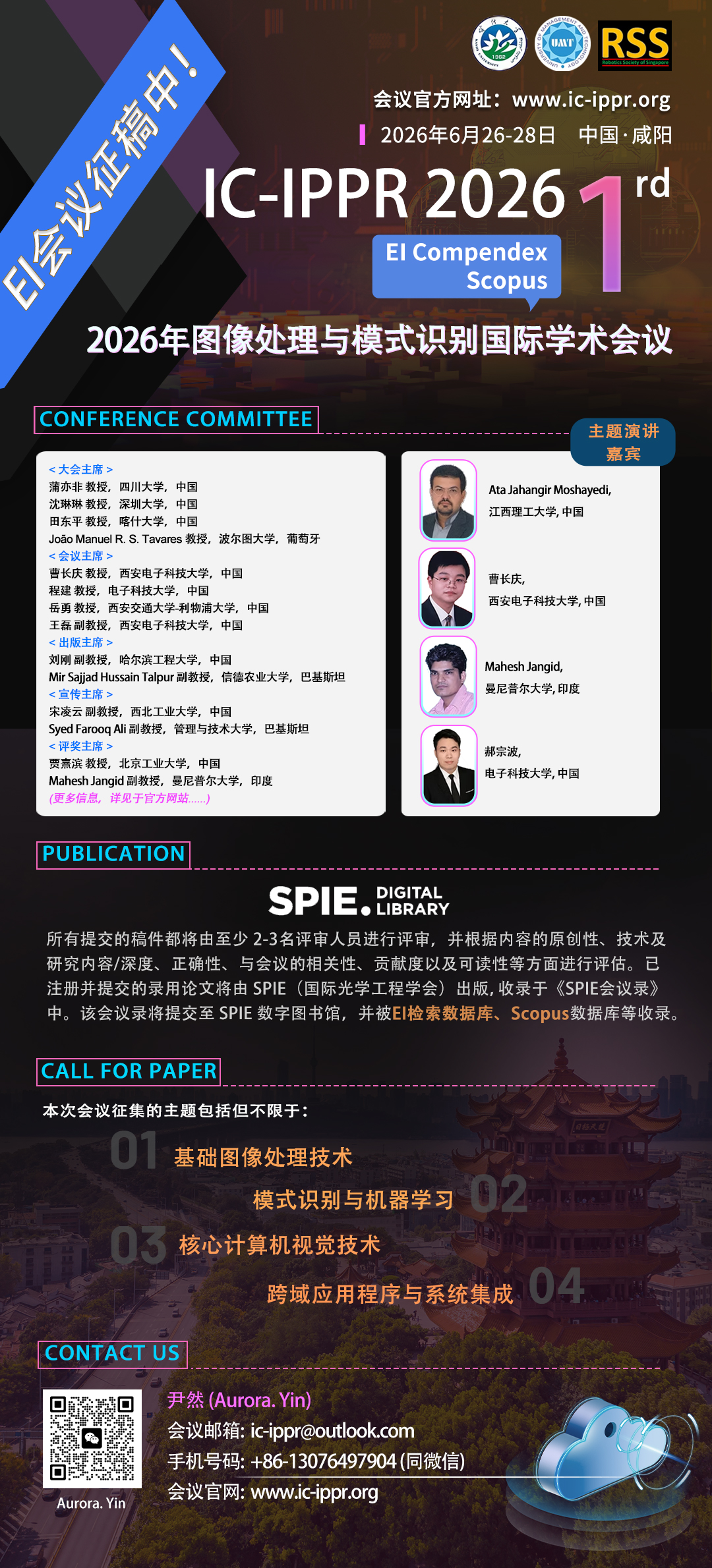 组委会嘉宾及大会议程等见附件,其它信息详见2026年图像处理与模式识别国际学术会议官网(https://www.ic-ippr.org/)。